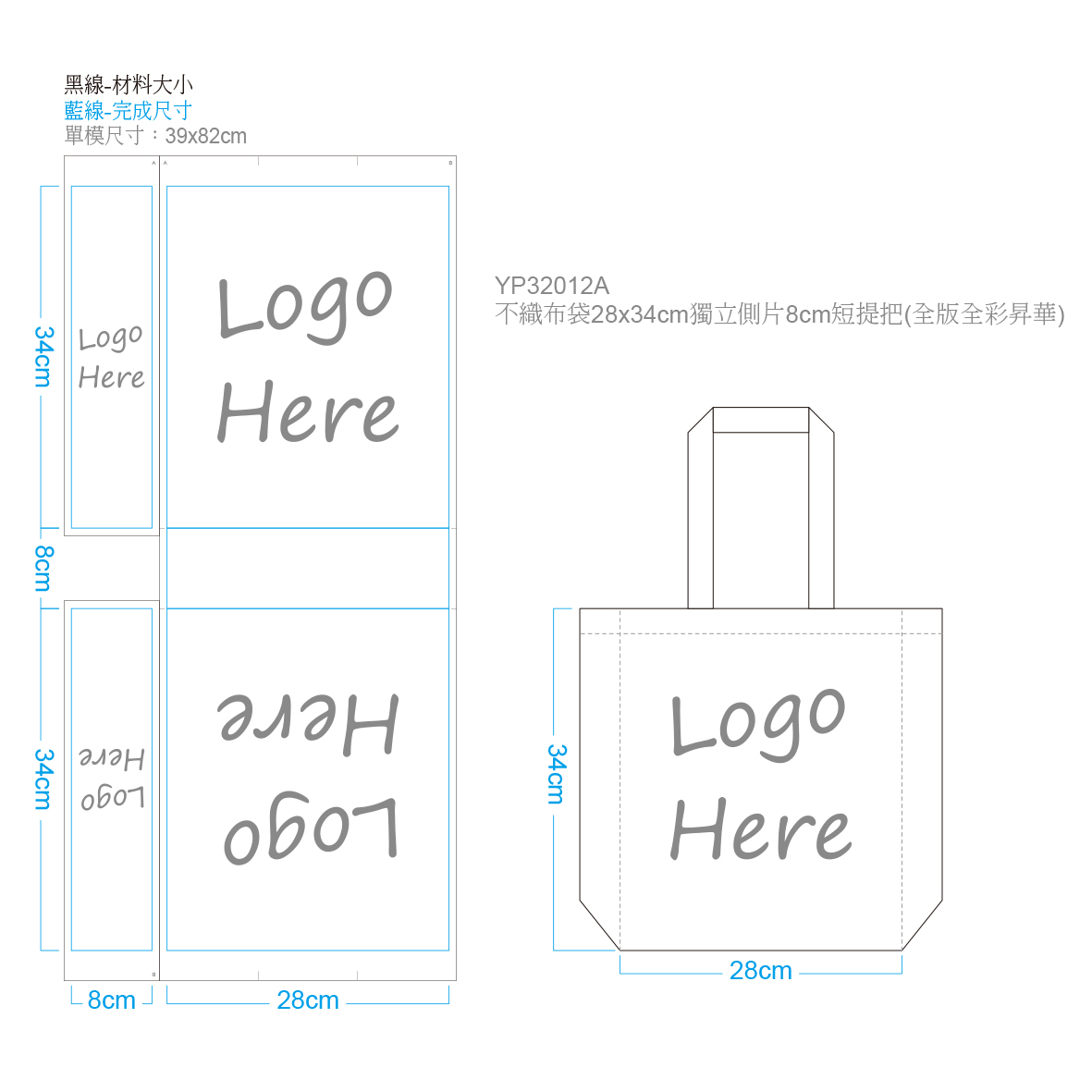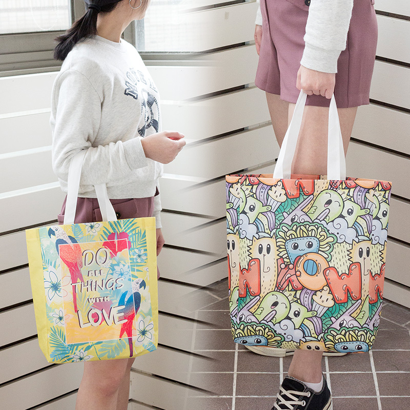 Same dimension as YP32012, but with different structure allowing your complete big logo or design on sides. The full color tote bags (hand bags) with short handles are ideal for shopping or day trip. Your large logo and photographic designs by sublimation on all sides. Non-woven fabric is Polyester Fabric Recycled from Plastic Bottles and is friendly to the environment. Sublimation process is also eco-friendly as it produces zero waste water.